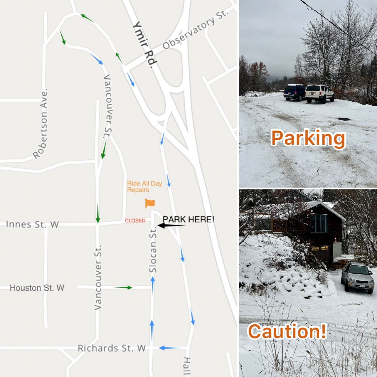 The 200 block of West Innes St is not plowed, so you must use Slocan St to approach